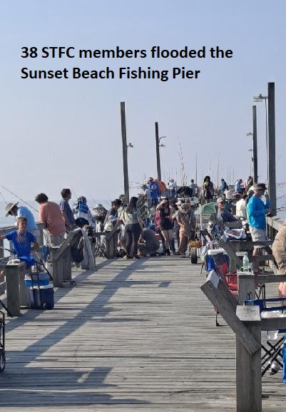 So if you haven’t tried pier fishing and happened to have missed Saturday’s event, you just might want to consider trying a bit of pier fishing. Piers provide excellent ocean fishing access for anglers that have physical limitations, who don’t own a boat, or who are very young or old. Or even for folks like me who get a tad sea-sick when the waves get rough. Local piers include Holden Beach, Ocean Isle Beach and our own Sunset Beach. A special “Thank You” goes out to the Sunset Beach Pier owners, and STFC members, Gary and Teresa Massey, and to their staff for hosting this event!