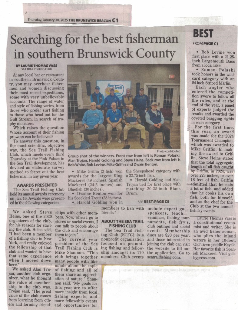 Brunswick Beacon News Article on Annual Tournament Mike Griffin 2024 Tournament Champion 18 feet of fish!!! 2024 Club Leaders Award Steve Heins and Alan Trojan Share: Click to email a link to a friend (Opens in new window) Email Click to share on Nextdoor (Opens in new window) Nextdoor Click to print (Opens in new window) Print MoreTweet Click to share on Reddit (Opens in new window) Reddit Share on Tumblr Click to share on WhatsApp (Opens in new window) WhatsApp Like Loading... Related