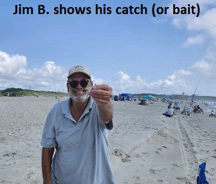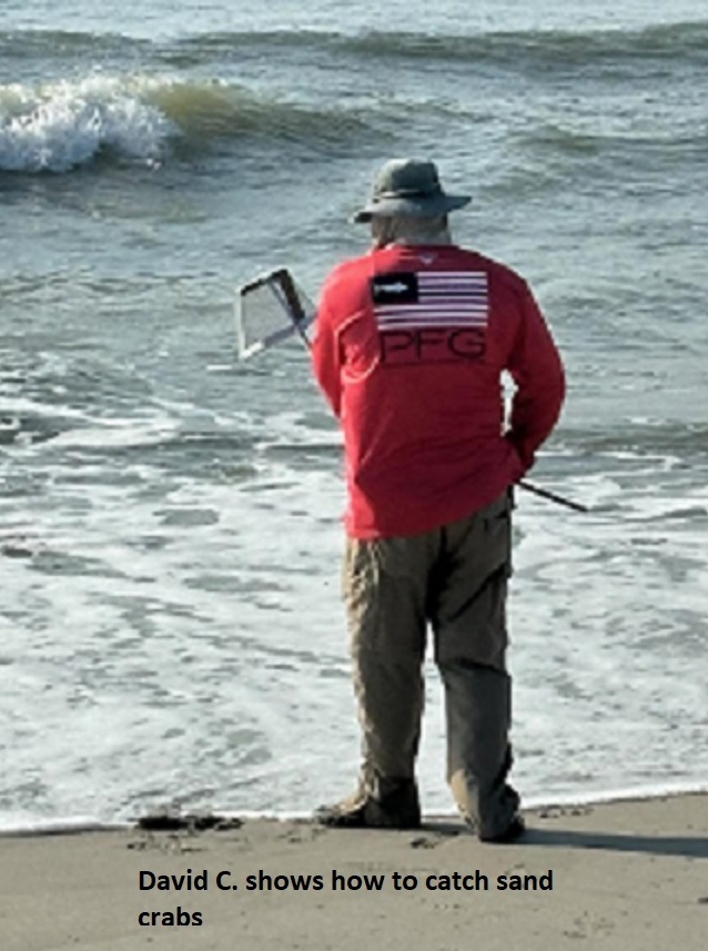 A great turnout for the yesterday’s Surf Fishing foray. Seven members from the Sea Trail Fishing Club joined three members and a guest from Seacoast Anglers for a “How-To” hosted by Bob White (who is actually a member of both clubs). Bob brought live bait and helped us novices with tips for catching our own live bait and showing us how to rig up to catch the big ones out in the surf.