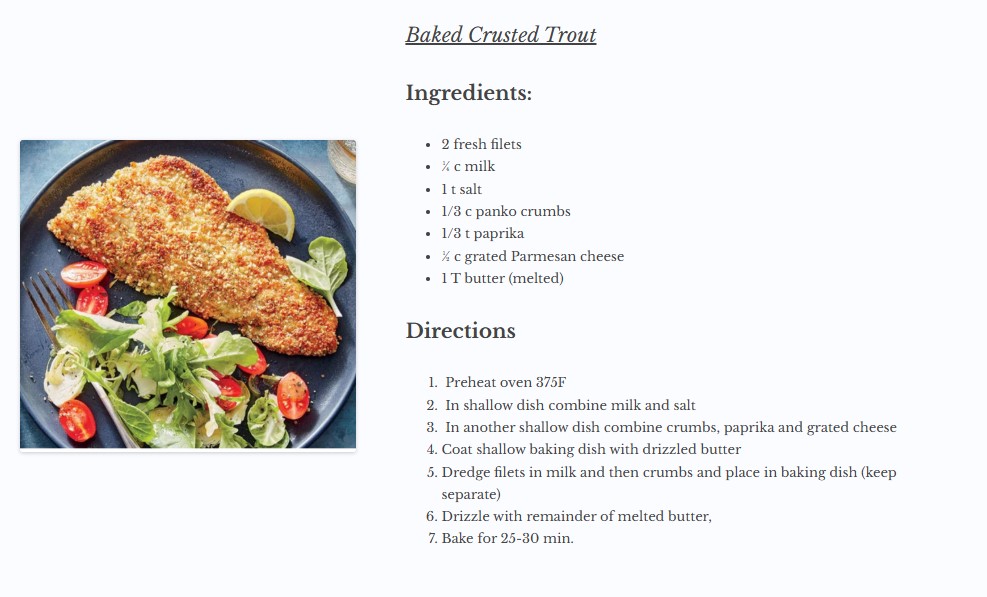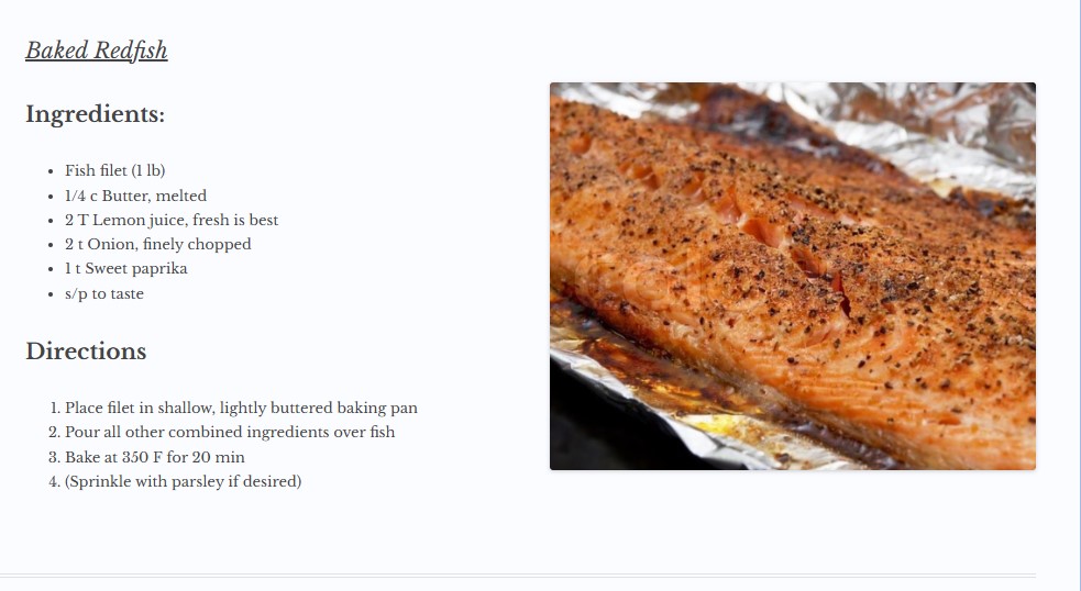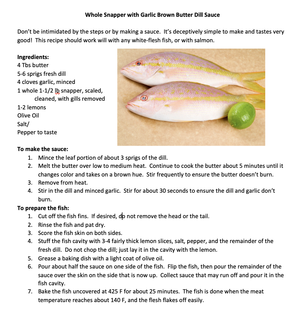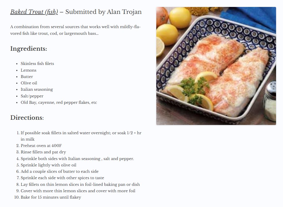 The recipes featured include favorite fish recipes and special treats submitted by our members at club meetings and club events.