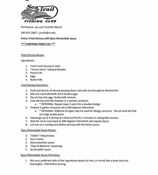 - Fried Shrimp – First Place Winner by Joe & Christine Niland