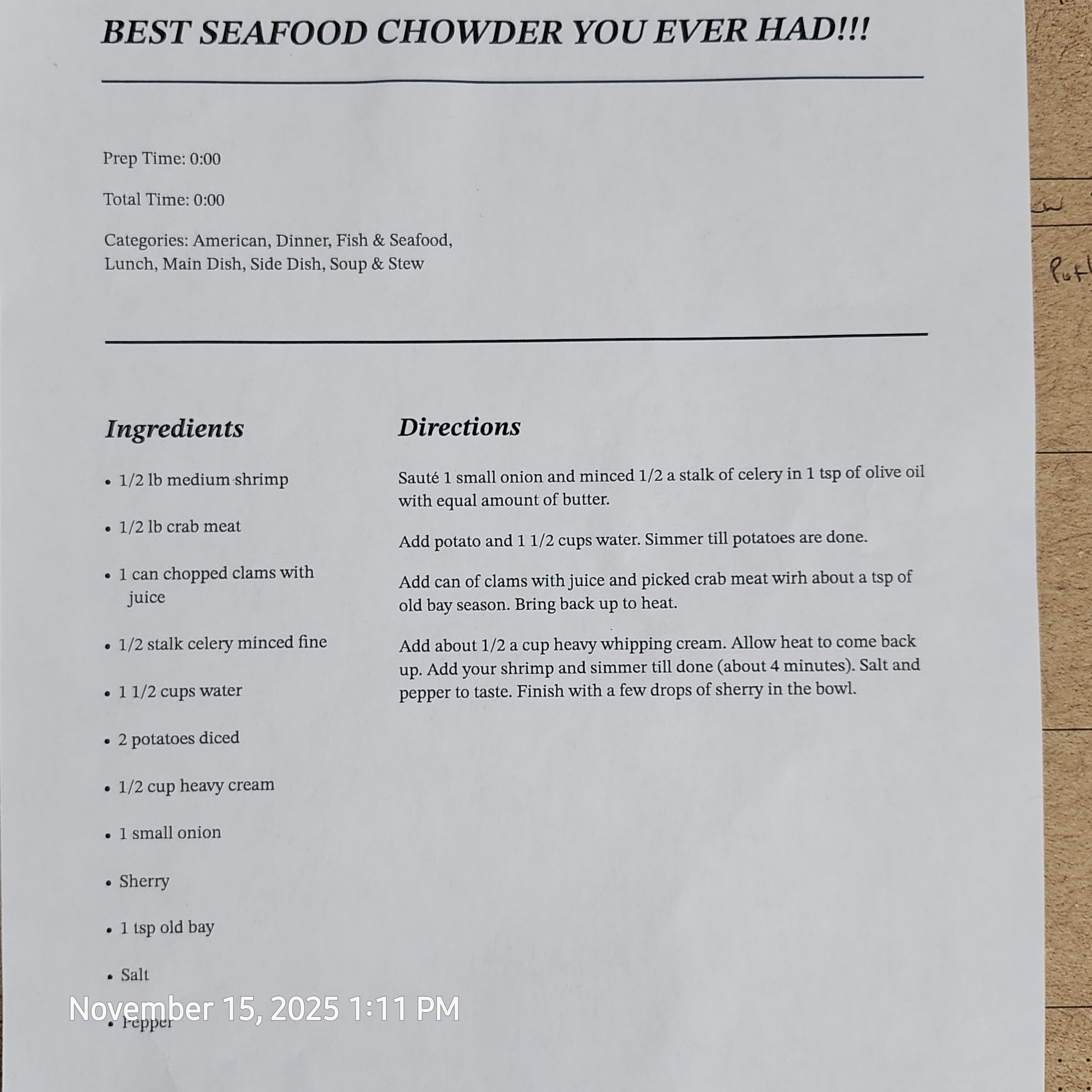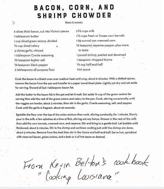 - Bacon, Corn & Shrimp Chowder – Second Place by Alan Trojan