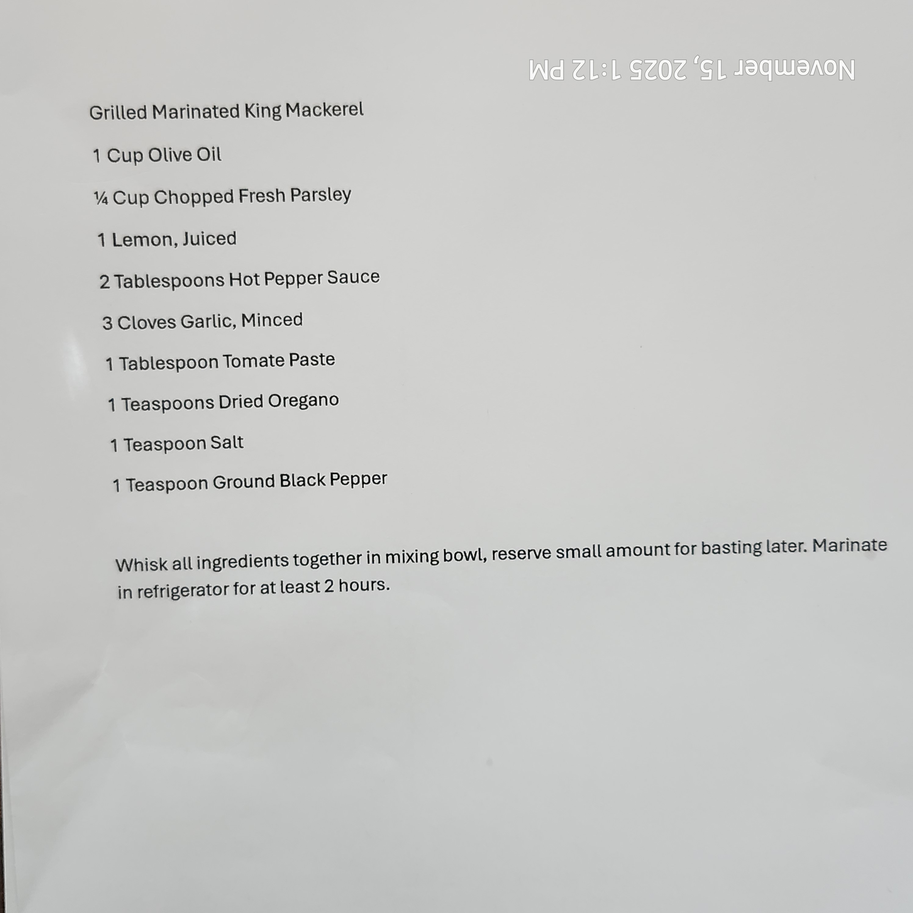 - Marinated King Mackerel – Third Place by Mike Griffin