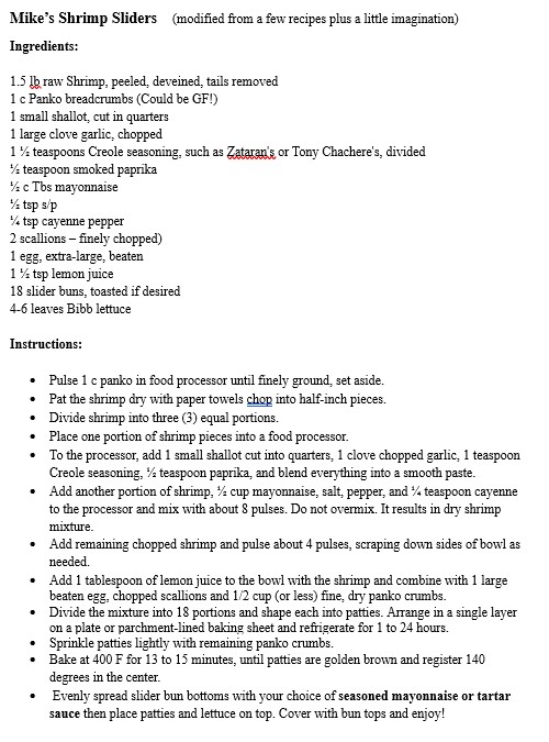 - Mike’s Shrimp Sliders – Second Place by Mike Shannon